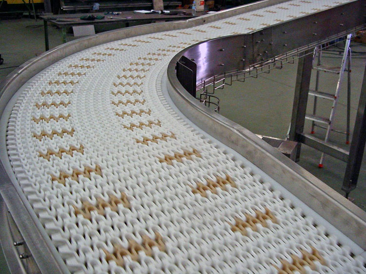 Esteira de Corrente Modulada em Curva com Varanda e Corpo de Inox